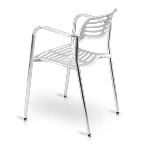Colores: Aluminio Base: Aluminio Respaldo: Aluminio Asiento: Aluminio Brazos: Fijos, Aluminio Brazo: Rígido Apilable: Sí